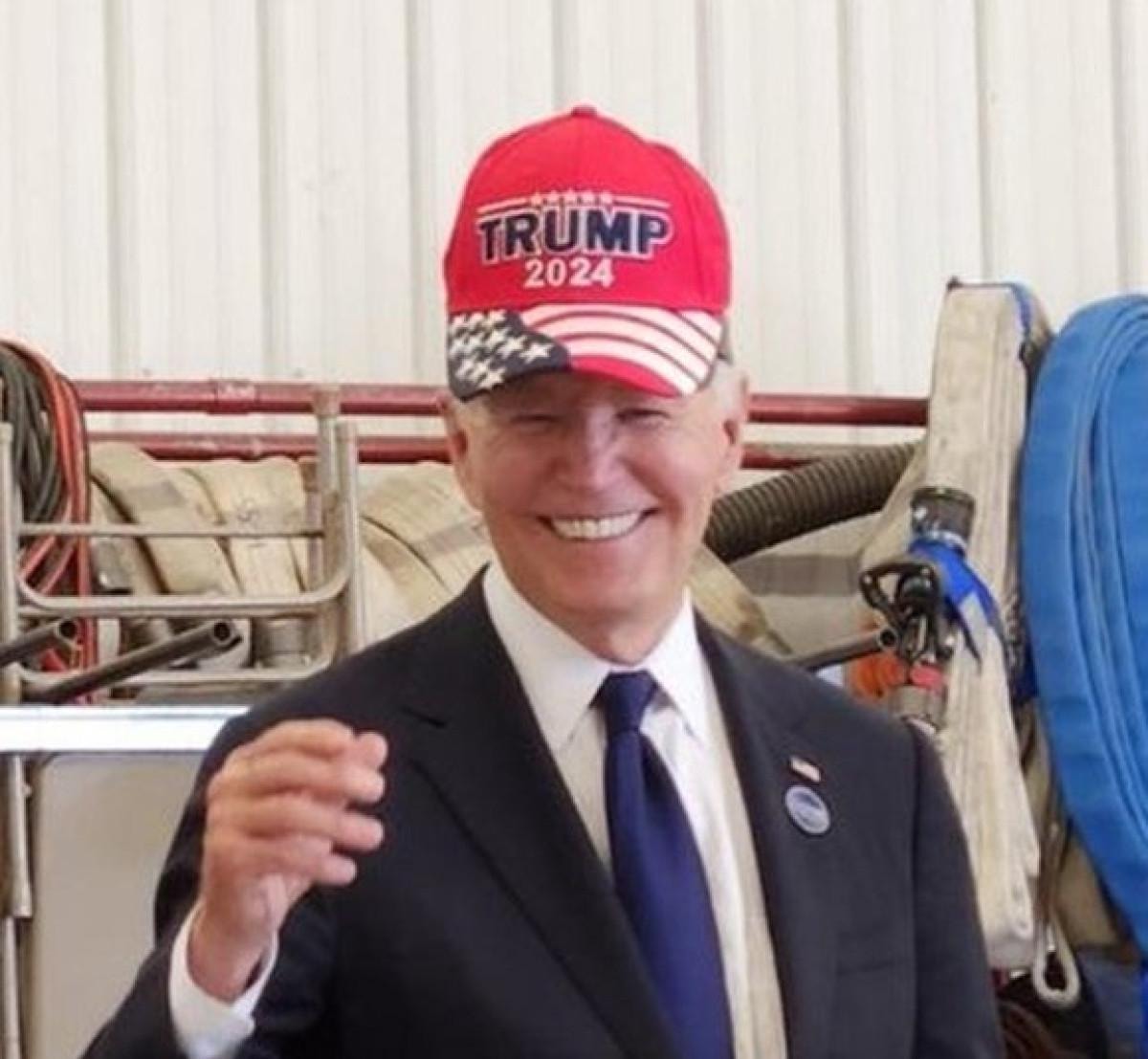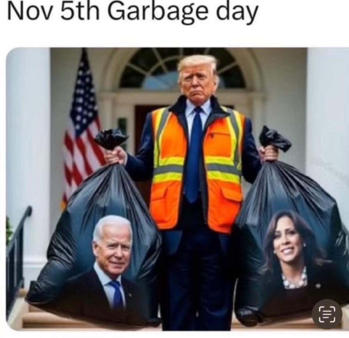 Yine bir başka görselde Trump'ın elinde tuttuğu çöp poşetlerine Biden ve Harris'in yüzleri eklendi.