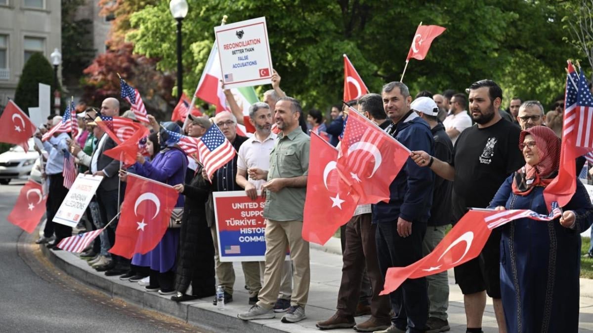 ABD'nin bir çok farklı eyaletinden gelerek Türkiye'nin Washington Büyükelçiliği Rezidansı önünde toplanan Türkler, Ermenilerin 1915 yılında yaşandığını iddia ettiği olayların gerçeği yansıtmadığını, ABD vatandaşlarına duyurmak için protesto düzenledi.
