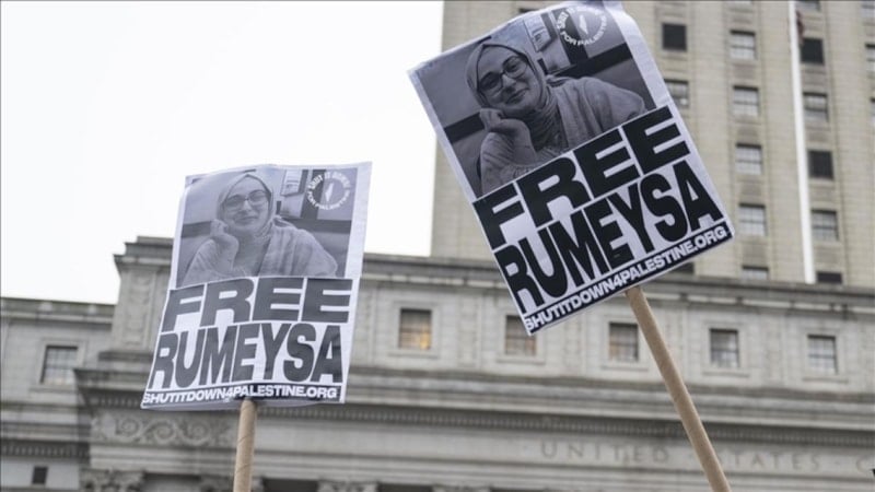 Rümeysa Öztürk, 25 Mart’ta Massachusetts’te arkadaşlarıyla iftar için yola çıktığı sırada, maskeli altı ICE görevlisi tarafından gözaltına alınmıştı. ABD Dışişleri Bakanı Marco Rubio, Öztürk’ün öğrenci vizesinin iptal edilip sınır dışı edileceğini açıklamıştı. Rubio, Öztürk’ün “Hamas destekçisi” olduğunu iddia ederek, 300'den fazla yabancı öğrencinin vizelerinin iptal edildiğini belirtmişti.