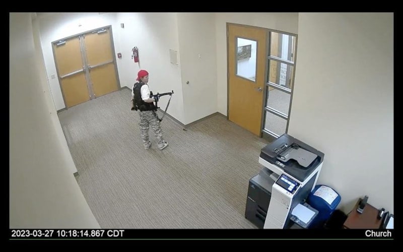 Görüntülerde, saldırgan Audrey Hale’nin polisle girdiği çatışmada vurularak etkisiz hale getirtildiği görüldü.