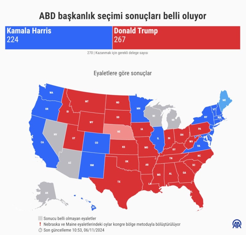 Başkanlık seçimini kazanan aday, 20 Ocak 2025'te yemin ederek dört yıl süreyle ABD'nin 47. başkanı olacak.