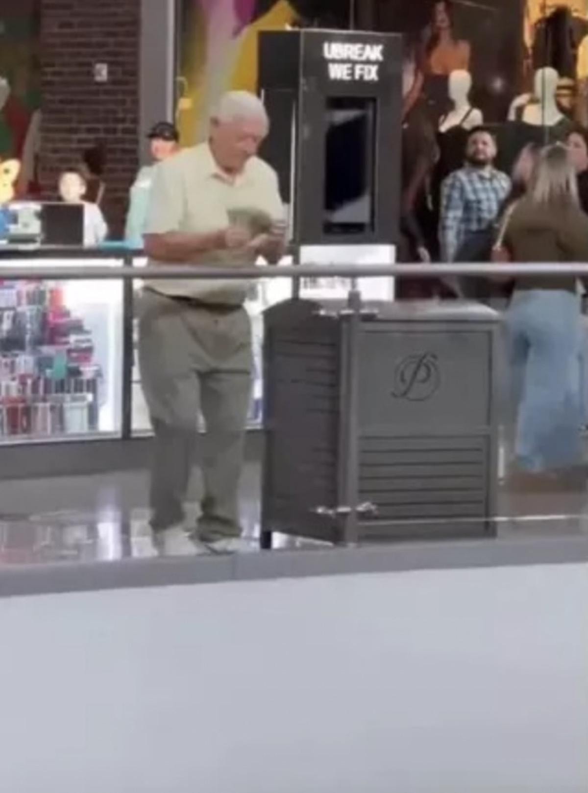 Sosyal medyada kısa sürede viran olan görüntüde, yaşlı bir adam AVM'nin üst katına çıktı.