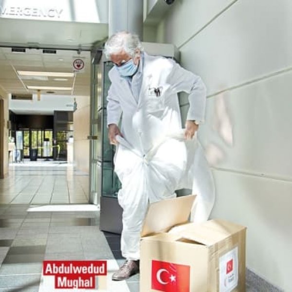 Dr. Abdulwedud Mughal de Türkiye’den gelen sağlık ekipmanlarını üzerinde denerken, “Türkiye’nin dünyanın birçok yerine yardımlarını biliyorum. Buraya da yardım ettiklerini görmek güzel. Özellikle maske ve koruyucu tulum sağlık çalışanları için çok önemliydi.” dedi.
