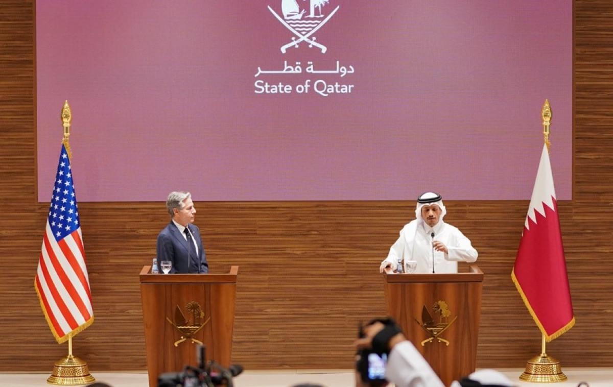 ABD Dışişleri Bakanı Antony Blinken, Orta Doğu turu kapsamında geldiği Doha'da Katar Başbakanı ve Dışişleri Bakanı Muhammed bin Abdulrahman Al Thani ile bir araya geldi.