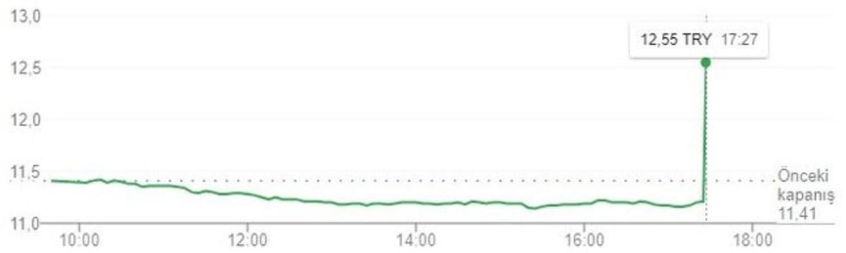 Güne 11,45 TL'de başlayan Halkbank (HALKB hissesi), 17.25 itibariyle 12,55 TL'ye ulaştı.