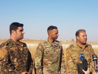 ABD'nin Suriye'de görevli komutanlarından Albay Myles B. Caggins, YPG'li terörist Mustafa Bali'yle dün ortak açıklama yaptı.