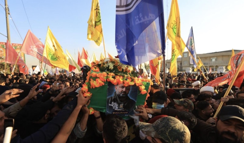 Aracına düzenlenen hava saldırısı sonucu hayatını kaybeden Haşdi Şabi komutanının cenaze töreni bugün gerçekleştirildi.