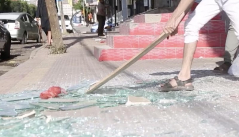 Bölgedeki vatandaşlar sokaklardaki cam kırıklarını temizledi.