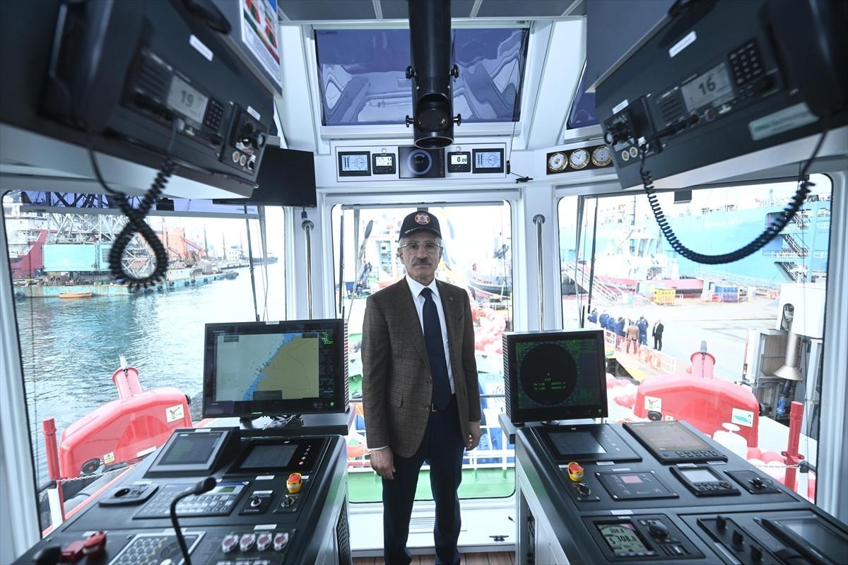 Bakan Uraloğlu, açılış kurdelesinin kesiminin ardından römorkörleri gezerek bilgi aldı.