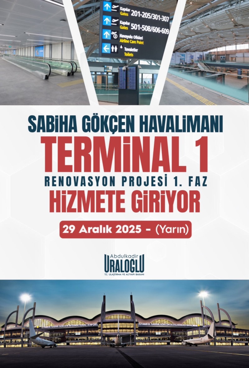 Sabiha Gökçen Havalimanı Terminal 1 Renovasyon Projesi'nin ilk fazının yarın hizmete açılacağını duyuran Abdulkadir Uraloğlu, "Artan yolcu talebini öngörerek havalimanımızın kapasitesini ve yolcu konforunu güçlendiriyoruz" ifadelerini kullandı.
