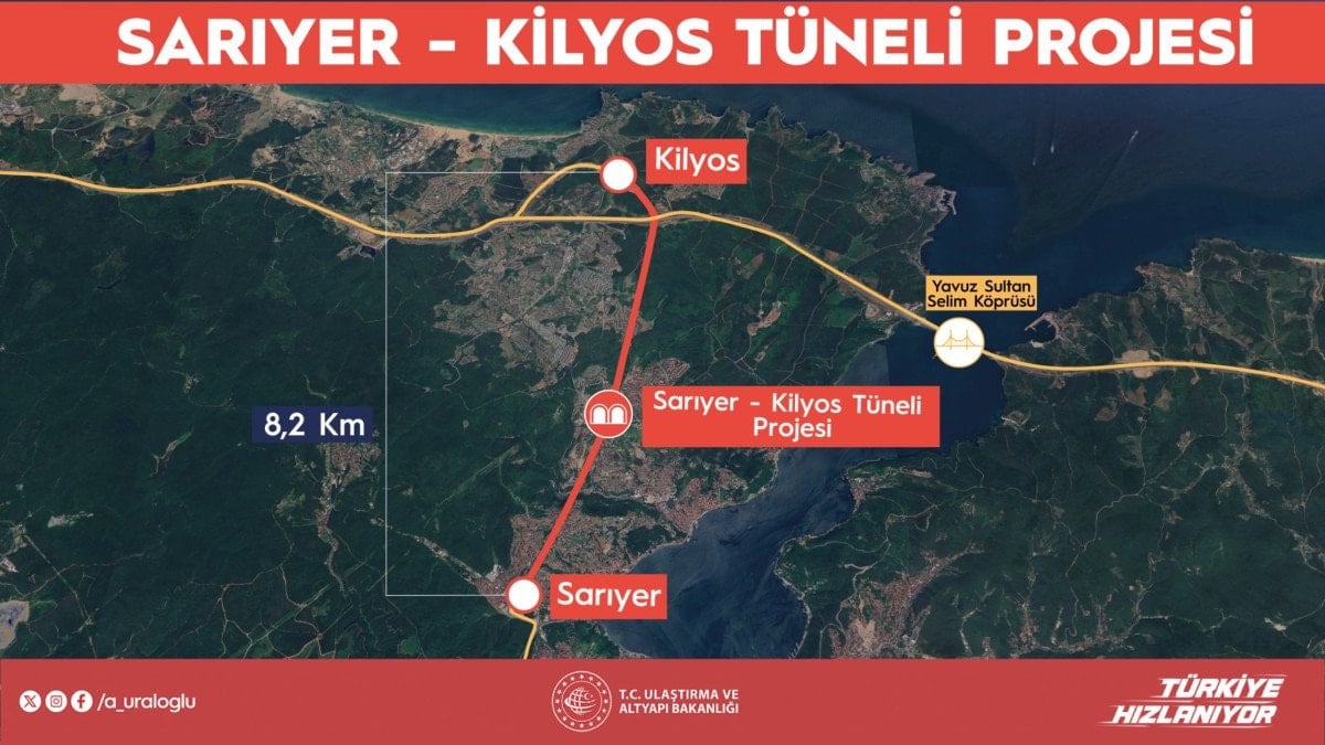 - Ulaştırma ve Altyapı Bakanı Abdulkadir Uraloğlu, Sarıyer-Kilyos Tüneli'nin 2026'da tamamlanacağını açıkladı.