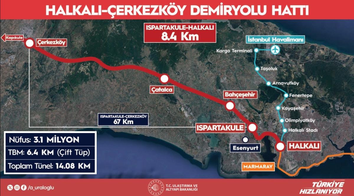 Uraloğlu, Ispartakule'nin devamında Çerkezköy'e kadar uzanan 67 kilometre uzunluğundaki güzergahtaki çalışmalara Çerkezköy tarafından başladıklarını kaydederek, gelecek dönemlerde Ispartakule'den devam eden kısmında Bahçeşehir ve Çatalca istasyonlarını inşa ederek Çerkezköy'e ulaşacaklarını anlattı.