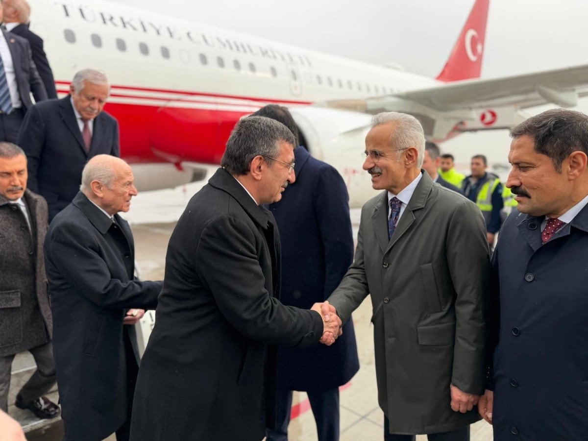 Bakan Uraloğlu, Çevre Şehircilik ve İklim Değişikliği Bakanı Murat Kurum ile birlikte Cumhurbaşkanı Yardımcısı Cevdet Yılmaz ve MHP Genel Başkanı Devlet Bahçeli'yi Hatay'da karşıladıklarını duyurdu.