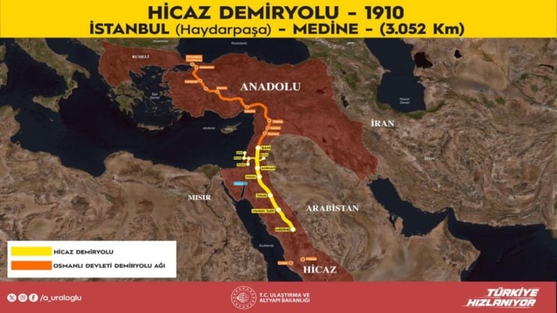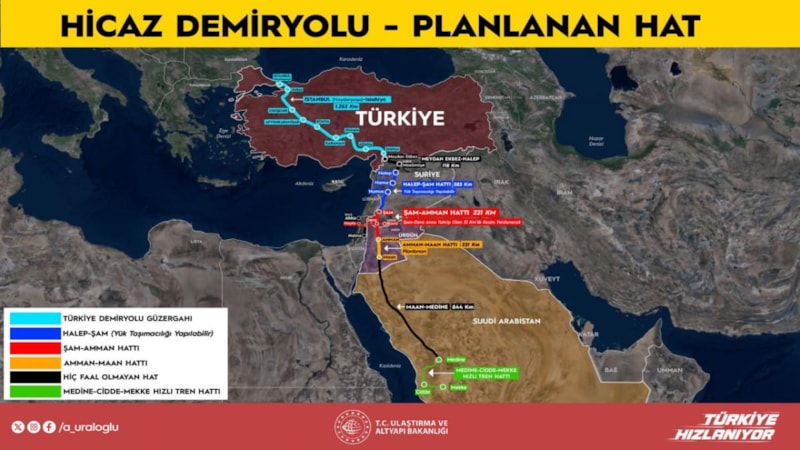 Tarihi Hicaz Demiryolu Hattı'ndaki çalışmalara ilişkin değerlendirmelerde bulunan Ulaştırma ve Altyapı Bakanı Abdulkadir Uraloğlu, projeyi Suriye ile beraber yürütmek istediklerini kaydetti. Uraloğlu, "Çalışmalar muhtemelen önümüzdeki sene başlar" dedi.