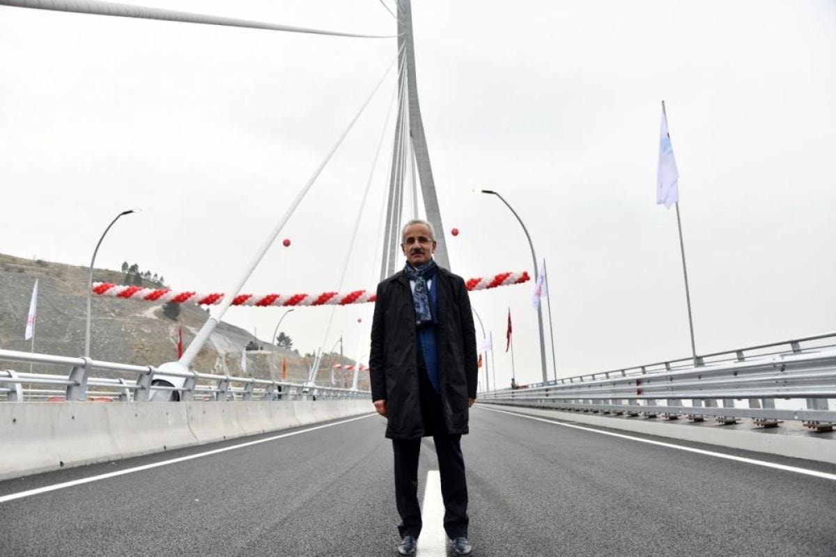 Uraloğlu, “Gergin eğik askılı ve Ters-Y tipi kule olarak tasarlanan köprü; aynı zamandan 168,5 metrelik tek pilon ve 380 metrelik orta açıklığı ile dünya literatüründe ise 4. sırada yer alıyor. Gergin eğik askılı projelendirdiğimiz köprümüzün orta açıklığı 25 adet çelik segmentten oluşuyor. Köprüde 42 adet de kablo imalatı gerçekleştirdik” ifadelerini kullandı.