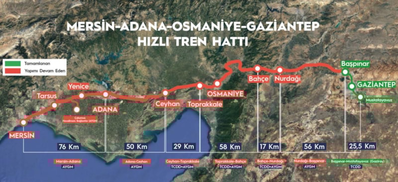 Ülkemizde yapımı devam eden en önemli demiryolu projelerinden biri olan Mersin-Adana-Osmaniye-Gaziantep hızlı tren hattı ile Osmaniye’yi de hızlı tren ile tanıştıracağız. Projemizin tamamlanmasıyla; Mersin-Adana-Osmaniye-Gaziantep arası mevcutta 361 kilometre olan mesafeyi 312,5 kilometre’ye ve 6 saat 23 dakika olan seyahat süresini ise 2 saat 15 dakikaya düşüreceğiz.