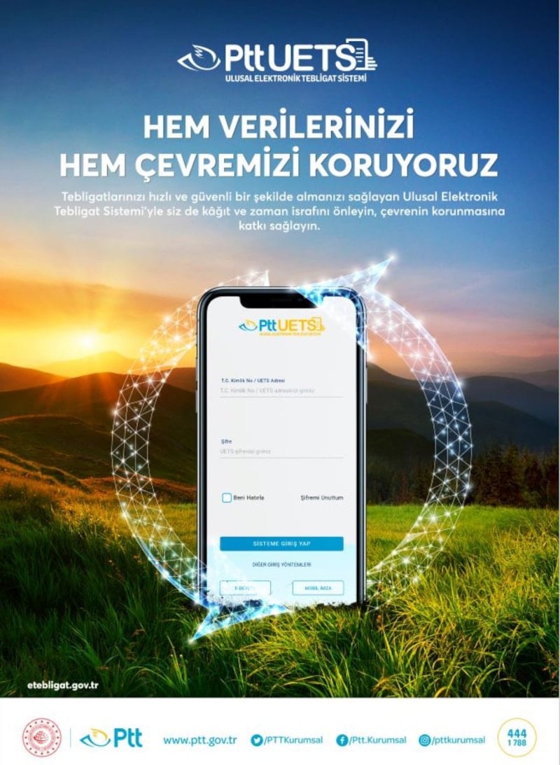"Uygulama ile vatandaşlarımız mobil telefonları üzerinden anında yeni tebligat ile ilgili bildirim alabiliyor. Mobil uygulama üzerinden alınan tebligatlar ayrıca dijital olarak da arşivlenebiliyor. Vatandaşlarımız 'https://www.ptt.gov.tr/dijital-posta-e-tebligat' sayfasından UETS hesabını açabiliyor ve kullanım kılavuzlarına ulaşabiliyor."