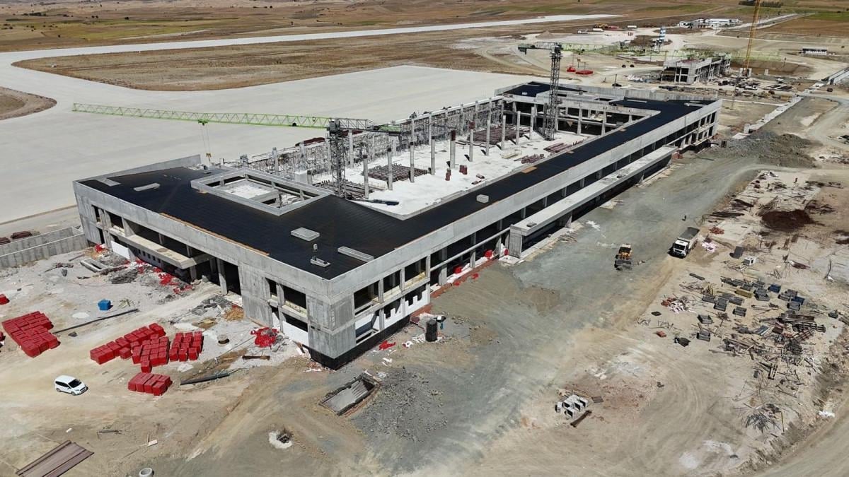 Aynı şekilde uçakların taksi yolu dediğimiz terminale yaklaşım yolları 265 metrelik bir yolunu beraberinde bitirmiş olduk. Onun haricinde burada yılda 2 milyon yolcuya hizmet edecek yirmi bin metrekarelik bir terminal alanının hali hazırda içerisindeyiz. Burada çalışmalarımız devam ediyor. İnşallah bunu yılsonuna kadar çatısını kapatacağız ve çalışmalarımızı kış şartlarında da içerisinde devam ettireceğiz.