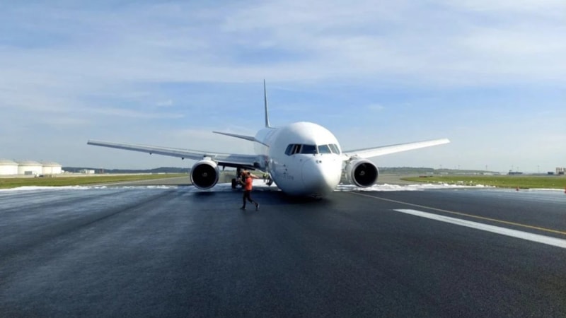İstanbul Havalimanı'nda kargo uçağı, ön iniş takımları açılmayınca gövde üzeri iniş yaptı.