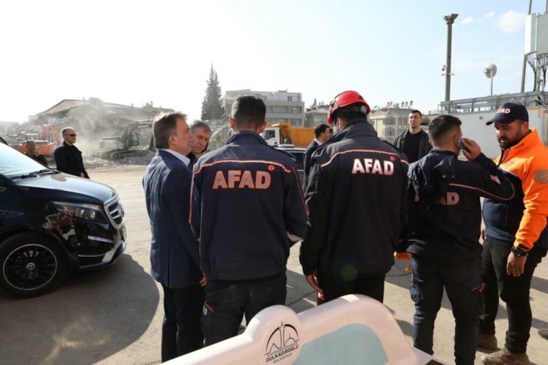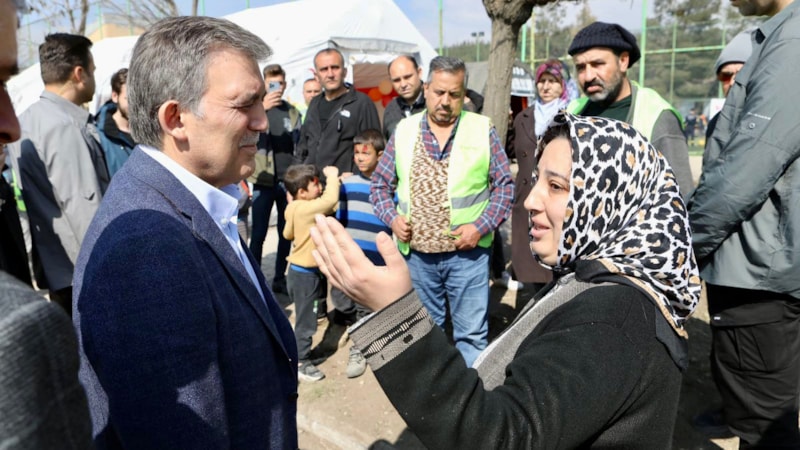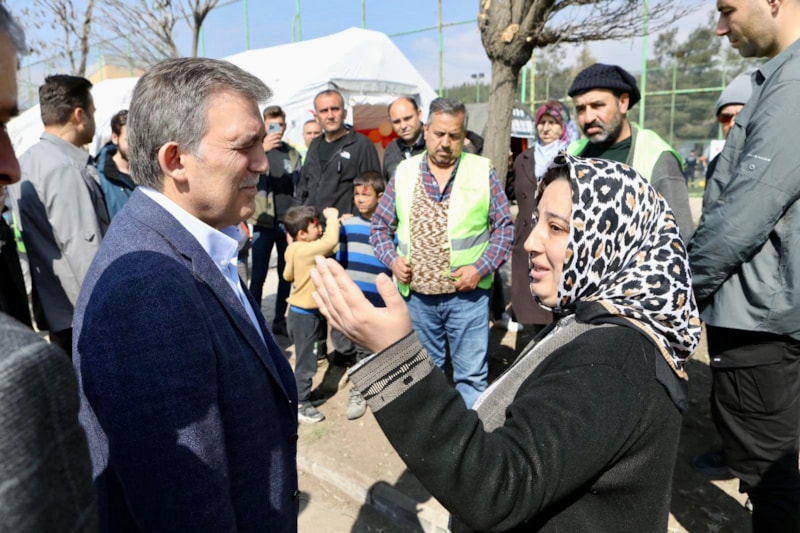Gül, daha sonra Kahramanmaraş merkez ve Pazarcık ilçelerindeki konteyner ve çadır kentleri ziyaret etti, depremzedelere geçmiş olsun dileklerini iletti.