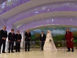 Kur'an-ı Kerim tilavetiyle başlayan, ardından nikah merasimi yapılan törene yaklaşık bin 500 davetlinin katıldığı belirtildi.