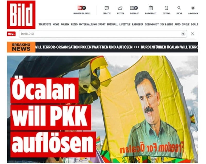 Almanya'nın önde gelen gazetelerinden Bild, birinci manşet olarak verdiği haberde "Öcalan PKK'yı dağıtmak istiyor" başlığını kullandı.