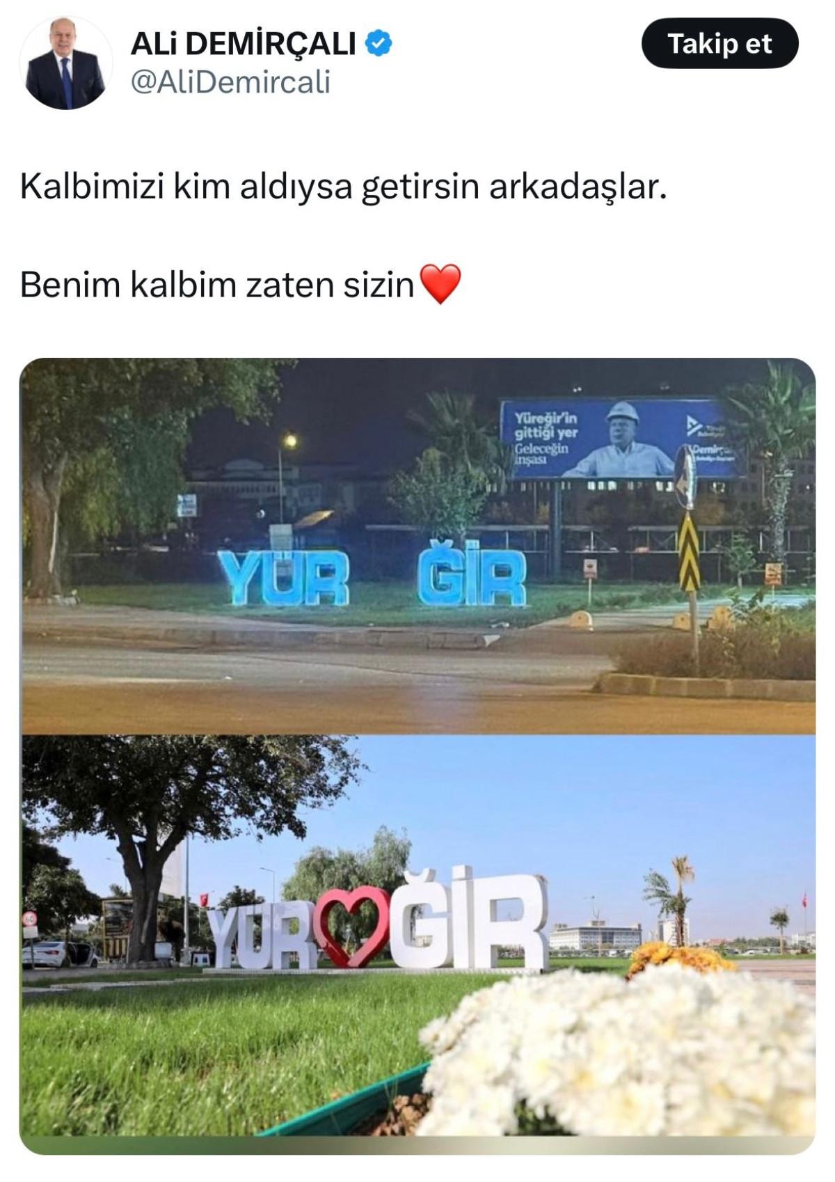 Belediye Başkanı Ali Demirçalı da sosyal medya hesabından yaptığı paylaşımda, "Kalbimizi kim aldıysa getirsin arkadaşlar. Benim kalbim zaten sizin” dedi.