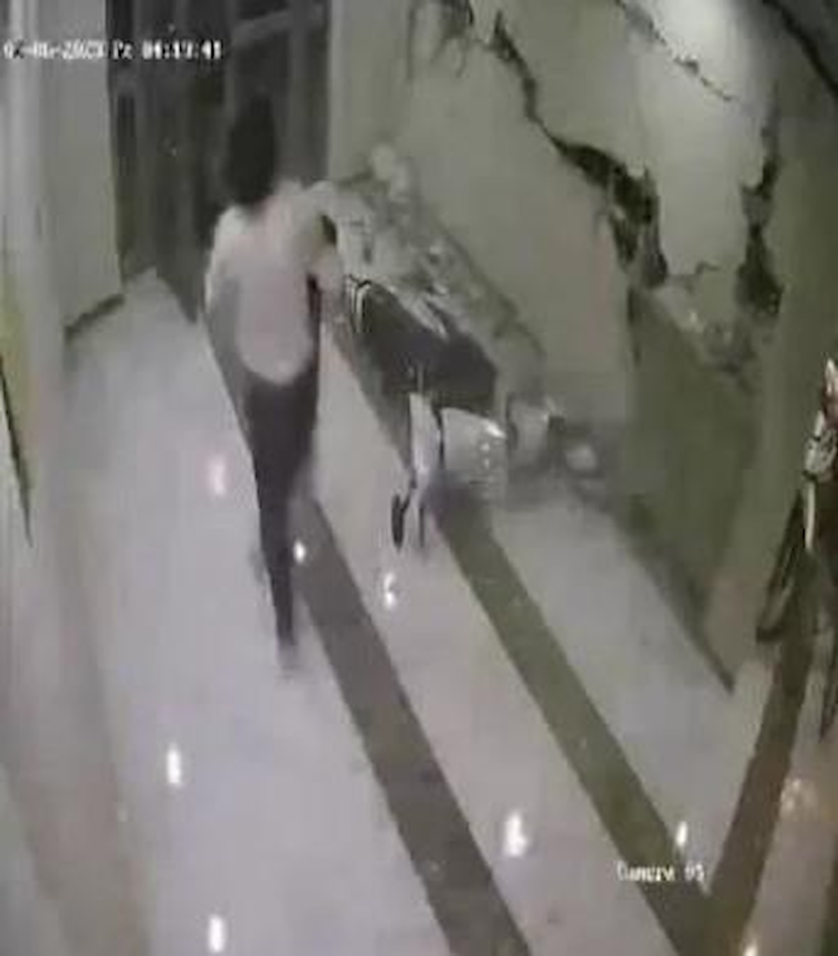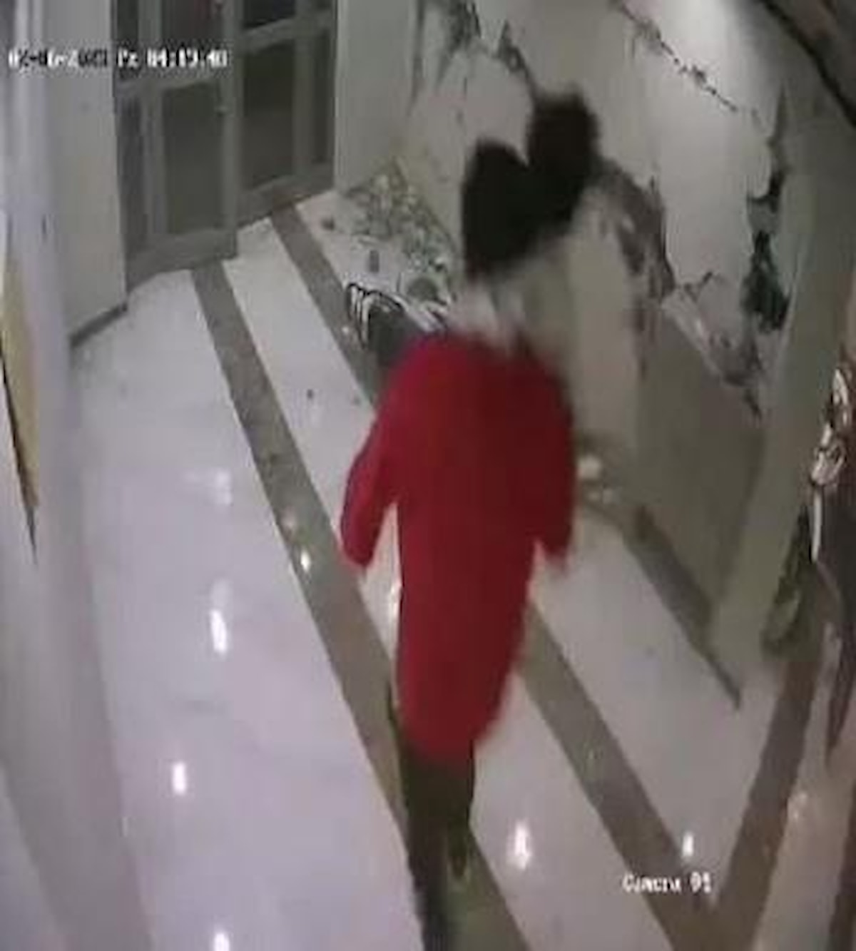 Çocuklarını da yanlarına alan aileler kaçarken, binanın sıvaları döküldü. Bu anların güvenlik kamerasına yansıyan görüntüleri ortaya çıktı.