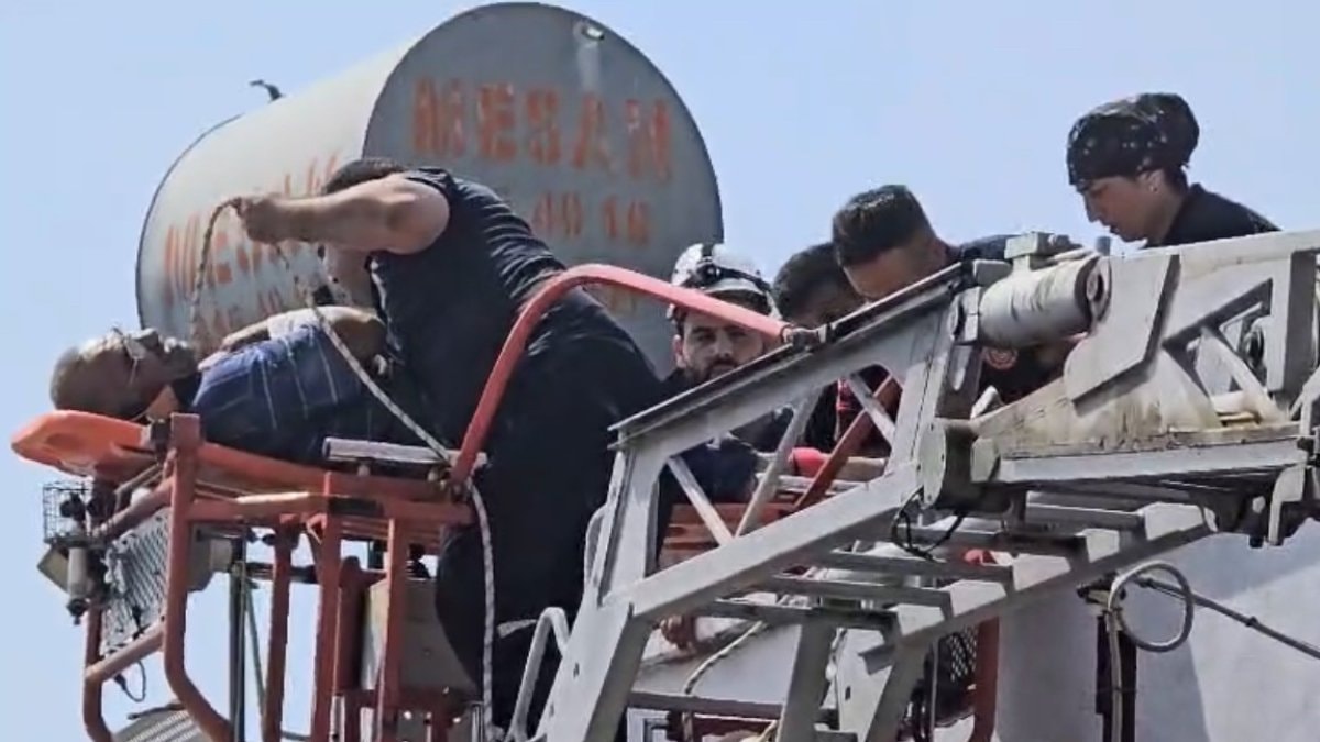 Damda yapılan ilk müdahalenin ardından yaralı işçi, güvenli şekilde aşağı indirildi.