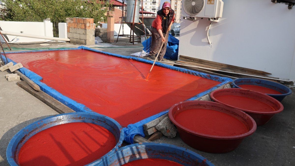 Evin damında salça kurutan Hatice Demiryürek ise, "Ben 120 kilogram biber aldım. İnşallah 20 kilogram salça çıkar diye düşünüyoruz. Böyle daha lezzetli ve güzel oluyor." diye konuştu.