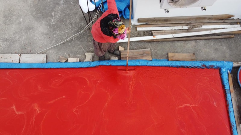 Biberin salçaya dönüşen yolculuğunda kırmızıya boyanan damlar dikkat çekti.