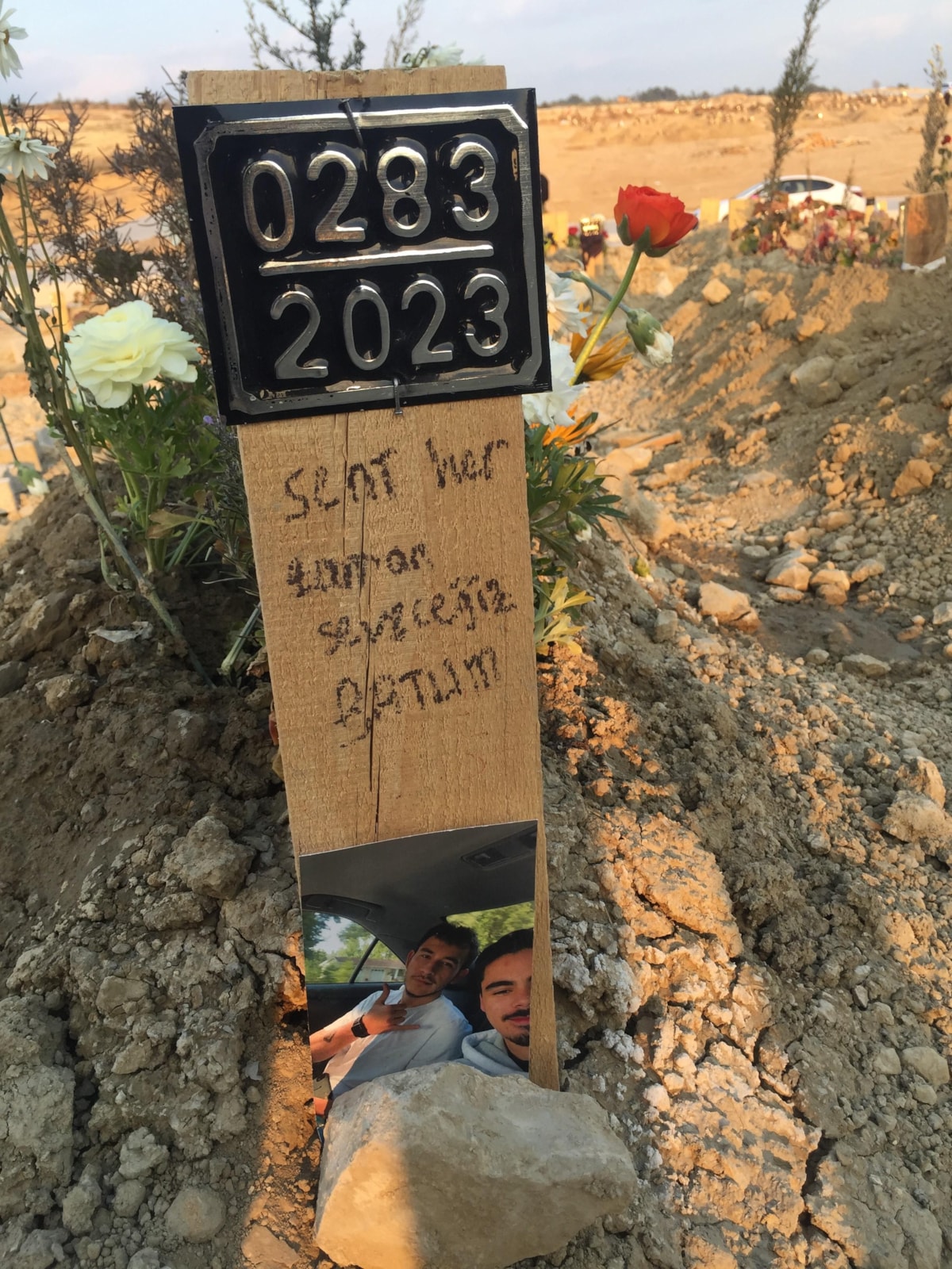 Mezar tahtasına bırakılan fotoğraflar ise görenleri duygulandırıyor…