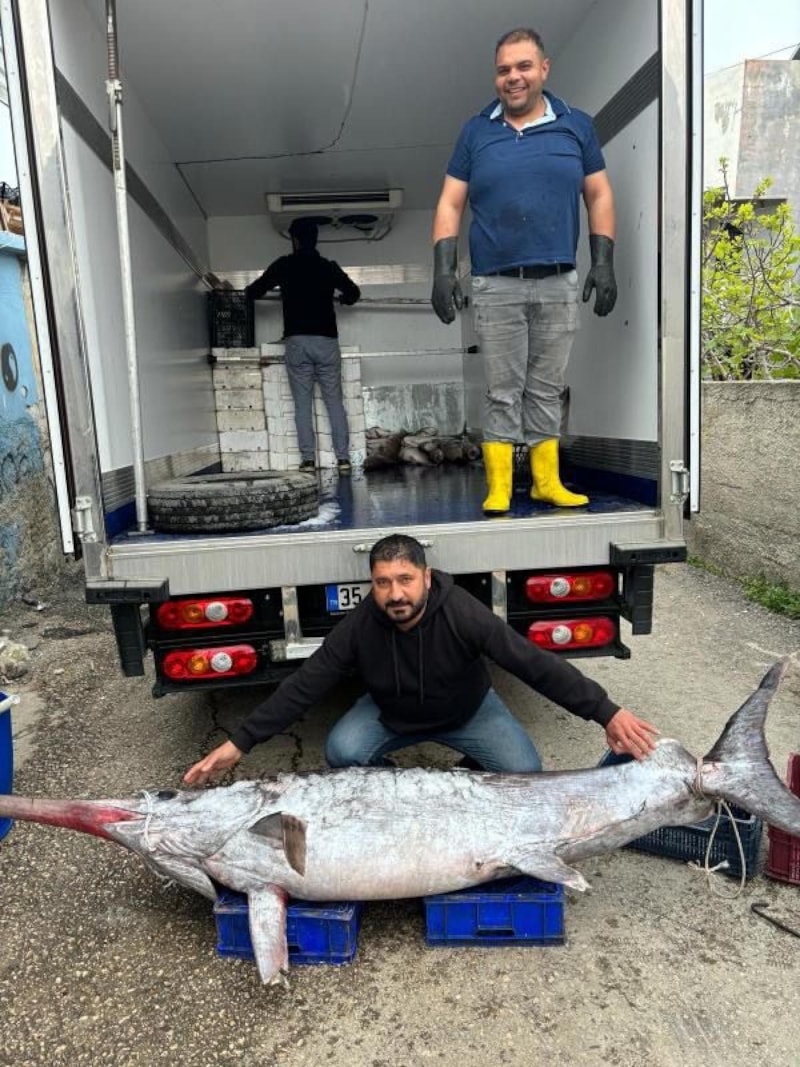 Balıkçı Bahri Gayır, "Kılıç balığının normalde 24-30 kilolarına denk geliyoruz ancak bu büyüklükte olanı ilk kez yakalandı. Bereketli olsun ama bu da kurtarmıyor. Çünkü tekneciler olarak denizanalarından çok şikayetçiyiz." dedi.