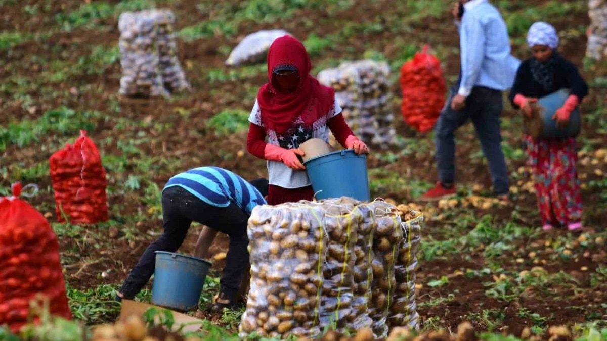 Türkiye’nin dört bir yanına gönderilecek patatesler tarım işçileri tarafından özenle selelere alındı.