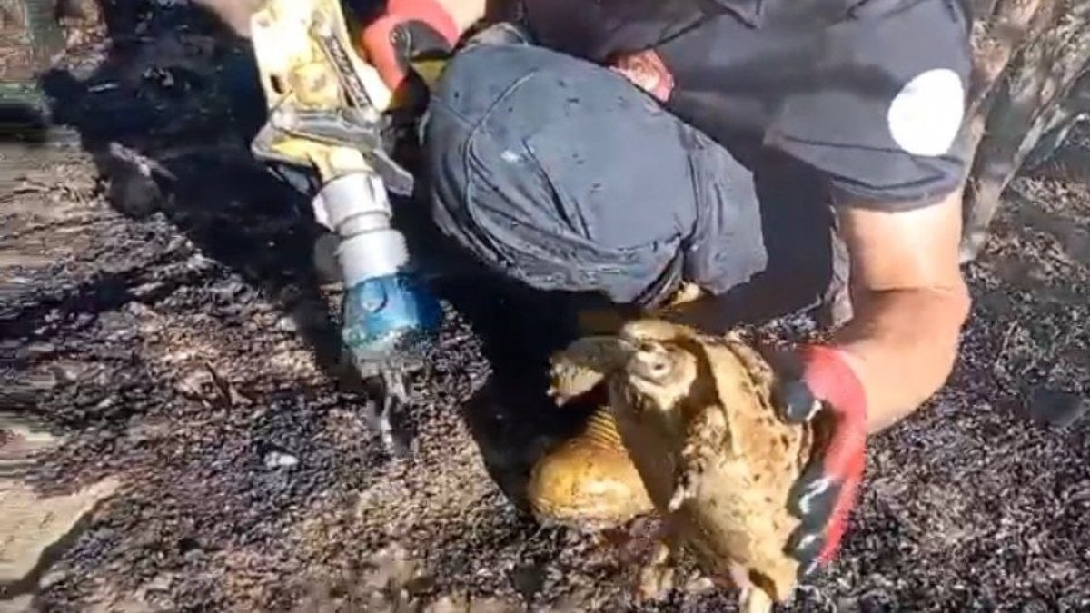 Kaplumbağayı alevlerin arasından kurtardılar