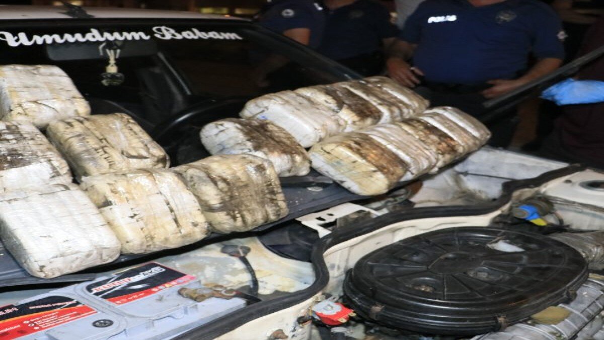 Narkotik ekipleri, yakalanan araç içerisinde detaylı şekilde incelemeye başladı. Yapılan incelemede aracın kapı içlerinde ve motor kısmında paketlemiş halde 16 kilo esrar maddesi ele geçirildi.
