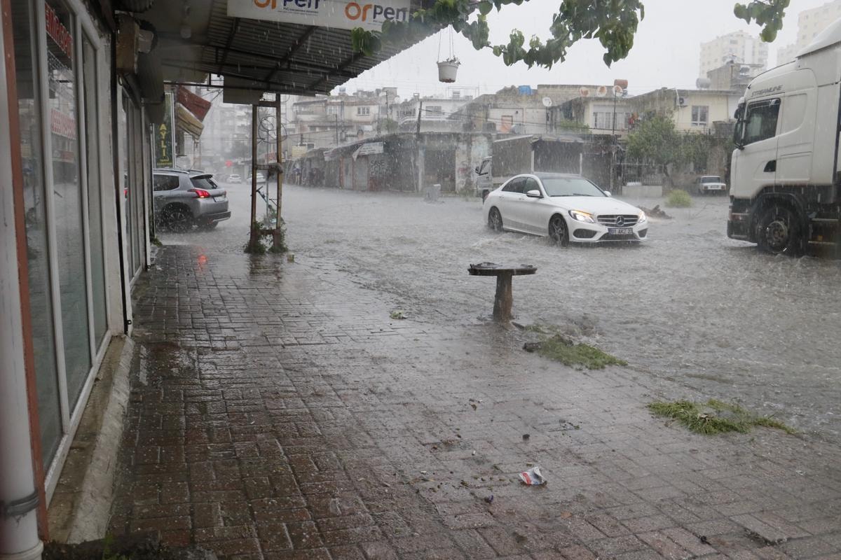 Meteorolojinin uyardığı sağanak yağış ve dolu Ramazan Bayramı'nın ilk günü Adana'da etkili oldu.