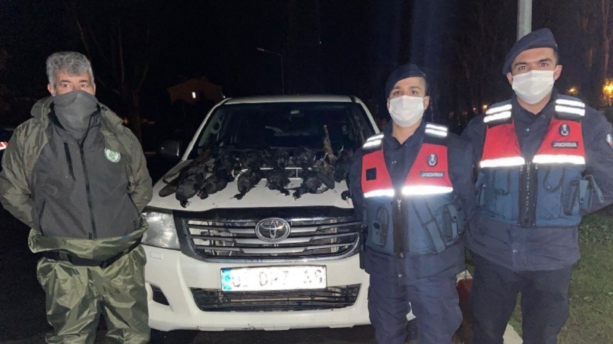 Adana’nın Karataş ilçesinde Jandarma Komutanlığı ekipleri, ilçeye bağlı Bahçe Mahallesinde Doğa Koruma ve Milli Parklar Şefliği ekipleri ile birlikte devriye gezerken 2 şahsın kuş avladıklarını fark etti.