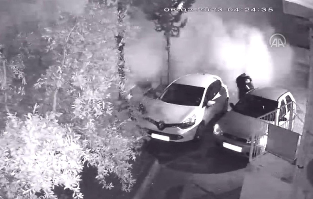 Yakındaki başka bir binanın kameralarınca kaydedilen görüntülerde, sarsıntıların başlamasıyla park halindeki araçların ileri geri hareket etmesi yer alıyor.