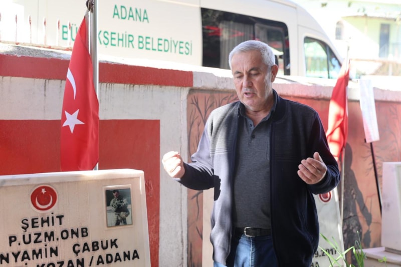 Şehidin babası Ünlen Çabuk ise oğlu Bünyamin Çabuk'un 2019 yılında şehit olduğunu hatırlatarak, "Bu mertebe herkese nasip olmaz. Ancak bir baba olarak bu acıyı yaşamak gerçekten çok zor. Yılın neredeyse her günü oğlumun mezarını ziyaret ediyorum. Onunla burada bir bağ kuruyorum. 365 günün 360 günü buradayım. Oğlum için ilçeyi hiç terk etmiyorum." dedi.