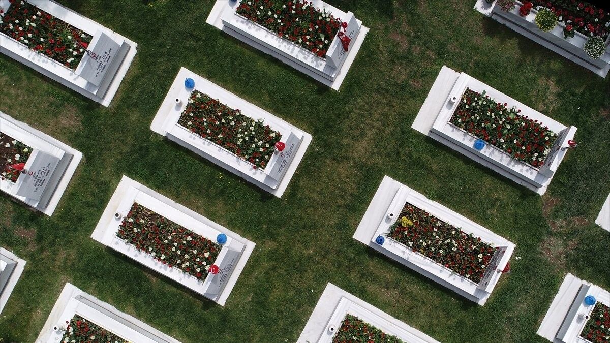 Şehitlikteki mezarların başında gözyaşı döken şehit ailelerini, mezarlara karanfil bırakan protokol üyeleri yalnız bırakmadı.