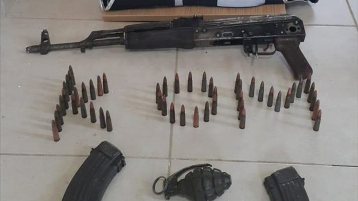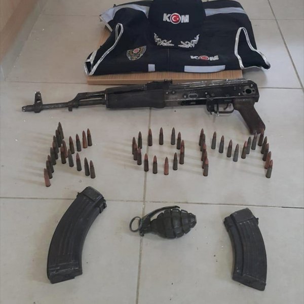 Adreste arama yapan ekipler, kalaşnikof, iki şarjör ve 50 mermi ile parça tesirli el bombası buldu.