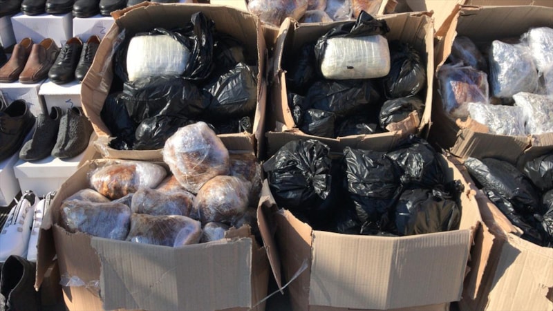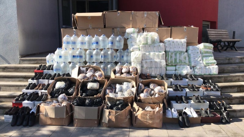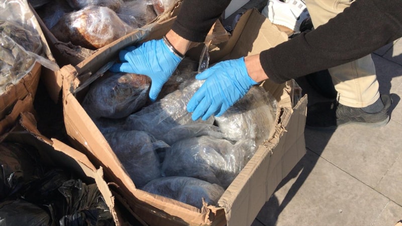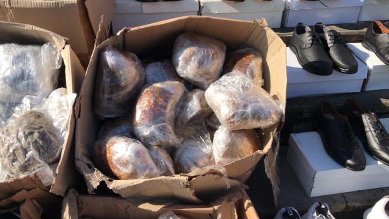 Deprem bölgesine yardım malzemesi götürdüklerini belirten zanlıların aracında narkotik dedektör köpeğiyle yapılan aramalarda su, çocuk bezi ve ayakkabı kolilerinin arasına gizlenmiş paketlerde 107 kilo 100 gram esrar bulundu.