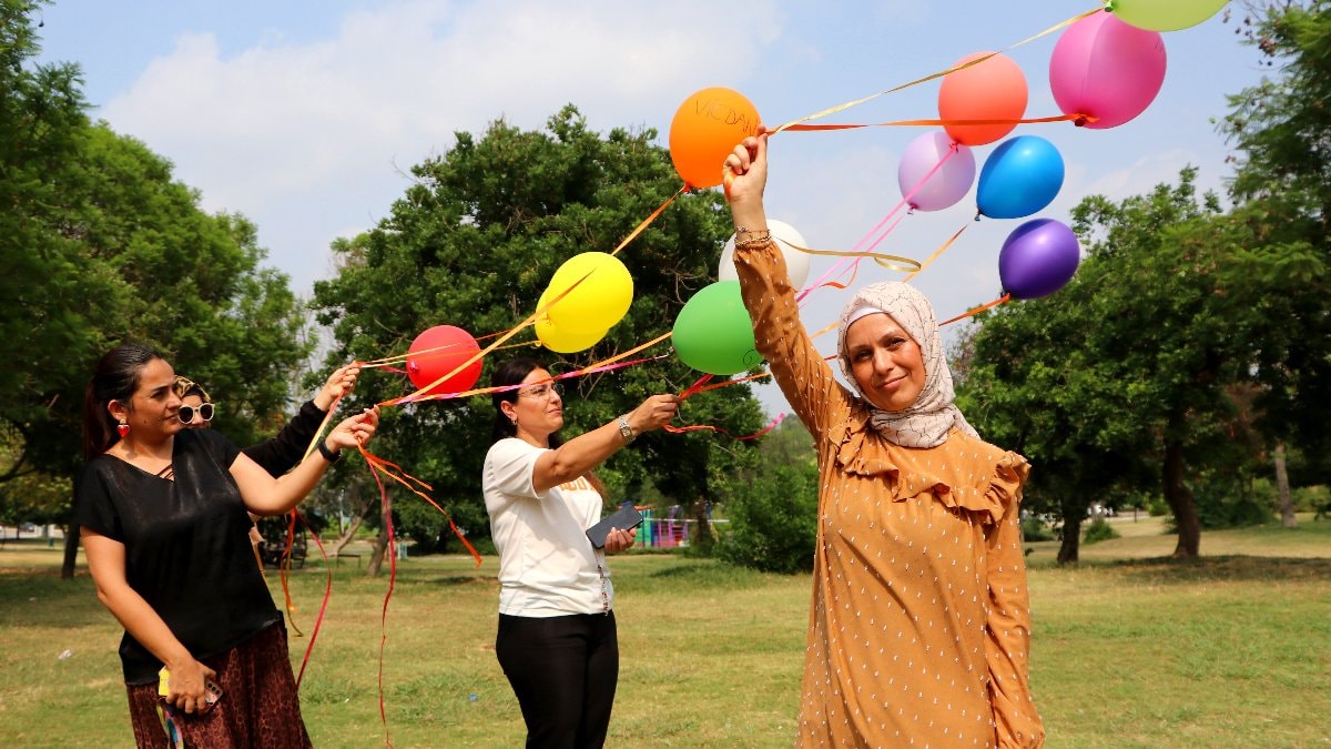 İhlas Haber Ajansı’na konuşan Dilek Bibilik, “Normal bir boşanma değildi. Benim için çok zor bir süreçti. Bir kadın olarak ruhen o kanlı ellerin üzerimden kalktığını hissediyorum. Şiddet ve zulmün olduğu bir yerde hiçbir kadın yaşayamaz. Benim gibi sıkıntısı olan kadınların hiçbiri umut yok demesin. Savaşmaya devam etsin. Evlatlarımız için savaşıyoruz. Bu balonlarında üstüne olması gereken duyguları yazdık. Bunları gökyüzüne bırakarak umutlarımızın bitmediğini göstermek istedim” ifadelerini kullandı.