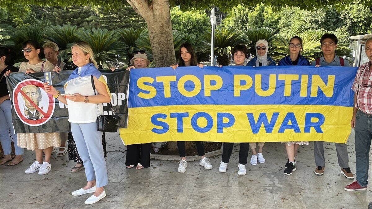 Adana'da yaşayan Ukraynalılar, ilhak kararına tepki göstermek amacıyla protesto gösterisi düzenledi.