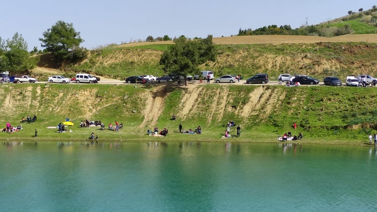 Vatandaşlar, Seyhan Baraj Gölü kenarında buldukları boş alanlarda piknik yaptı.