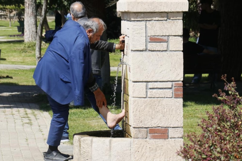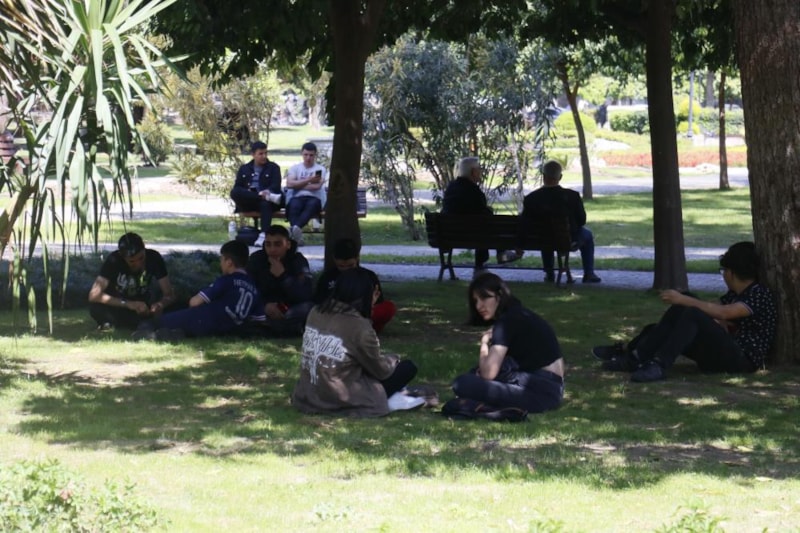 Parka gelen vatandaşlar ağaçların altında gölge otururken, birçok kişinin de yarım kollu tişört giydiği görüldü.
