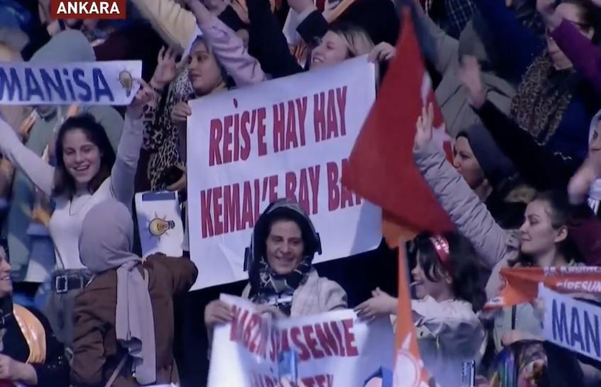 "Manisa'ya bak Manisa'ya. Manisa ne diyor? 'Reis'e hay hay, Kemal'e bay bay!' Maşallah. Neler de çıkartıyorsunuz. Bak nabzım seksenle kalbim tek senle atıyor. Manisa'ya bak."