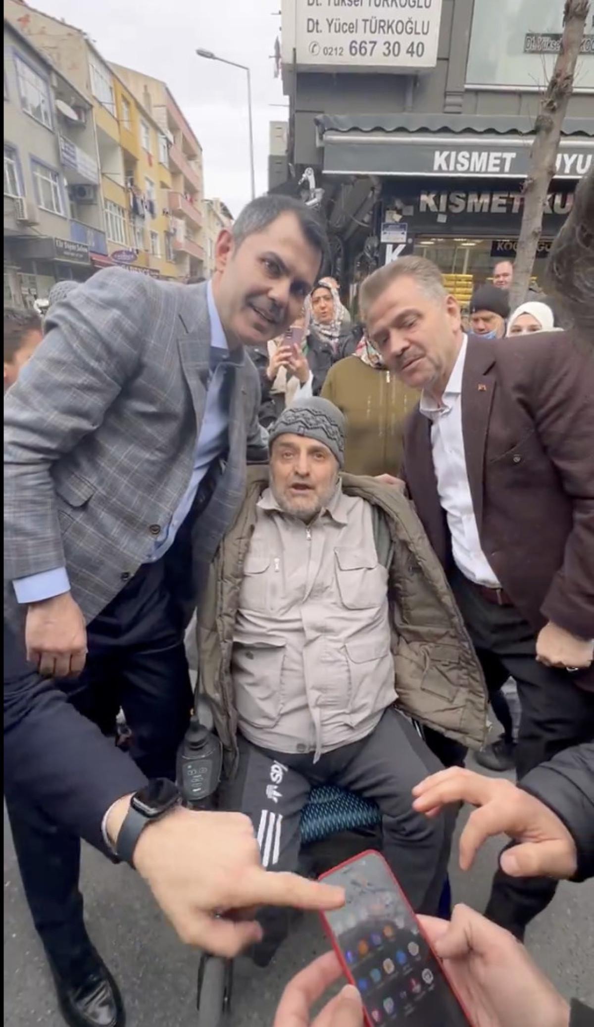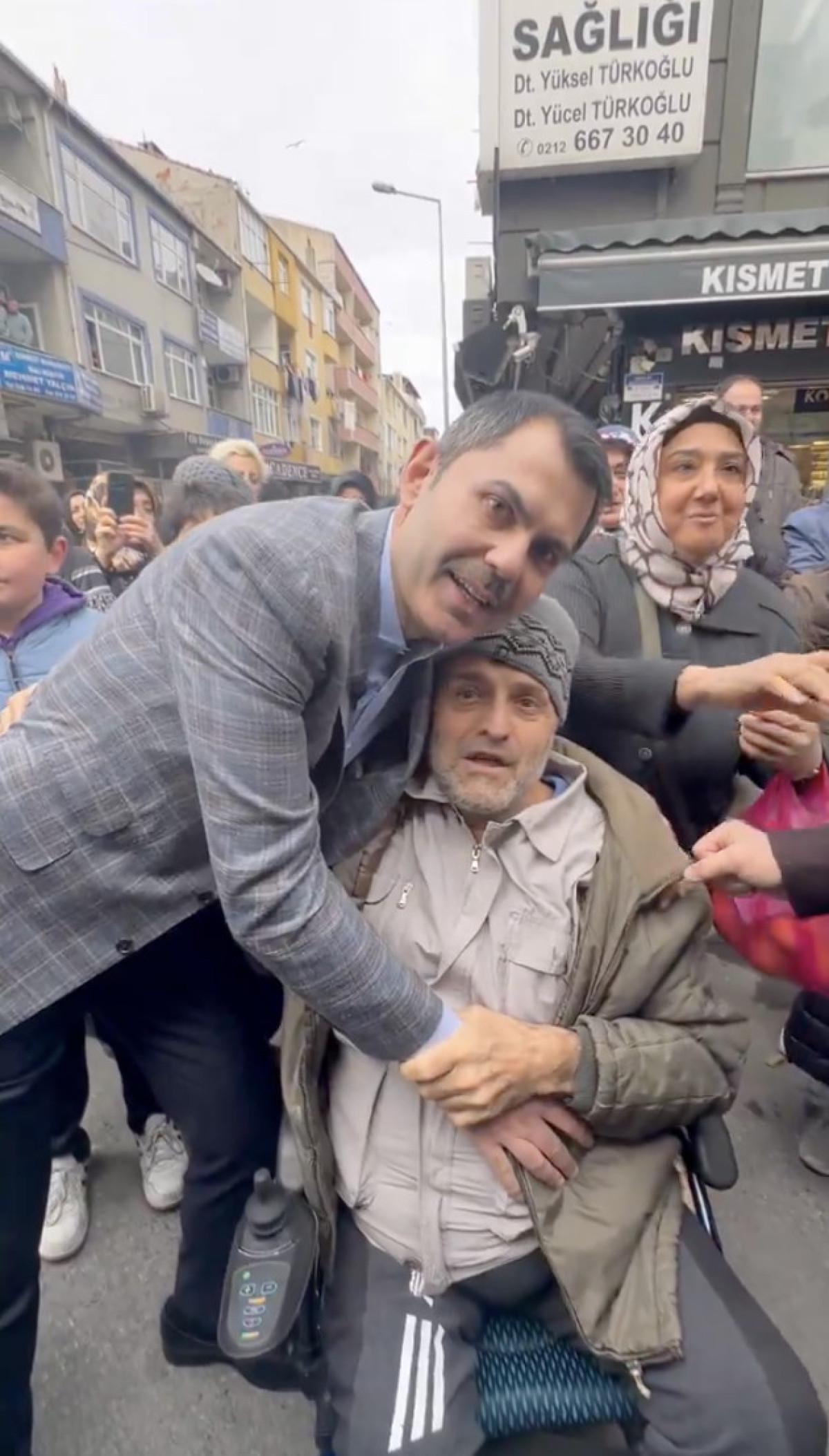 Murat Kurum ile fotoğraf çektiren vatandaş, "Büyük Başkan bizim Başkan. Allah'ın izniyle kazanıyoruz. Başkanım seçimi kazandıktan sonra çağır beni yanına seninle işim var. Bak fakir babası, Murat Kurum. Allah ömür versin." dedi.