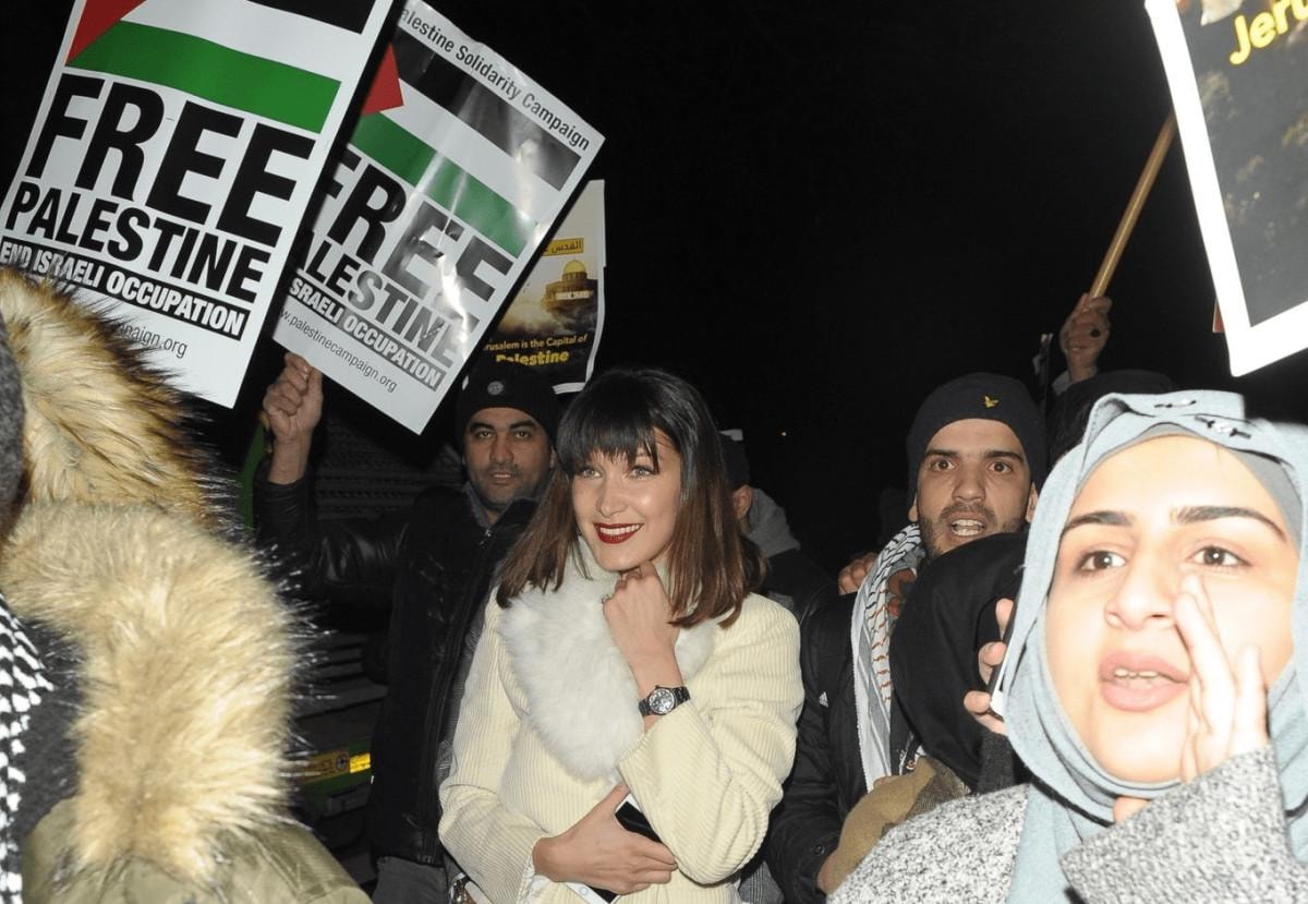 İsrail Başbakanı Netanyahu'yu Hitler'e benzeten Hadid, "Kariyerim dursa bile Filistin'i desteklemekten asla vazgeçmeyeceğim. Modellik işlerini kaybetmekten korkmuyorum ve Filistin hakkında sesimi yükseltmeye devam edeceğim. İsrail Başbakanı Netanyahu yeni Hitler!" ifadelerini kullanmıştı.